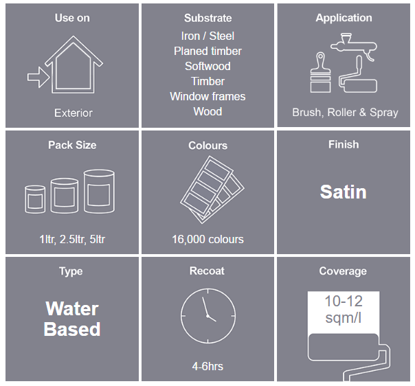 • A water based satin finish designed to apply and finish more like a traditional solvent based satinwood.