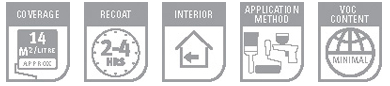 Coverage –  1 litre will cover approximately 14 square metres depending on the nature and porosity of the surface. Strong or contrasting colours may require additional coats. When using more than one tin of a colour in the same room, intermix before use.