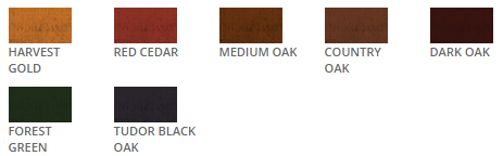 Country Oak, Dark Oak, Forest Green, Harvest Gold, Medium Oak, Red Cedar, Tudor Black Oak
