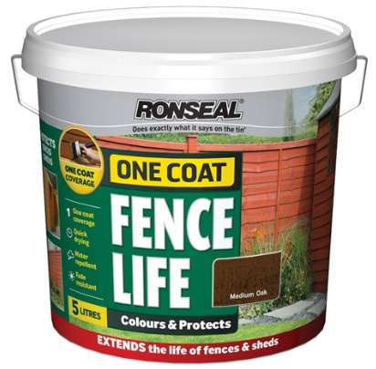 Ronseal One Coat Fencelife protects all rough sawn timber from the rigours of the weather with fade resistant colour in just one coat.